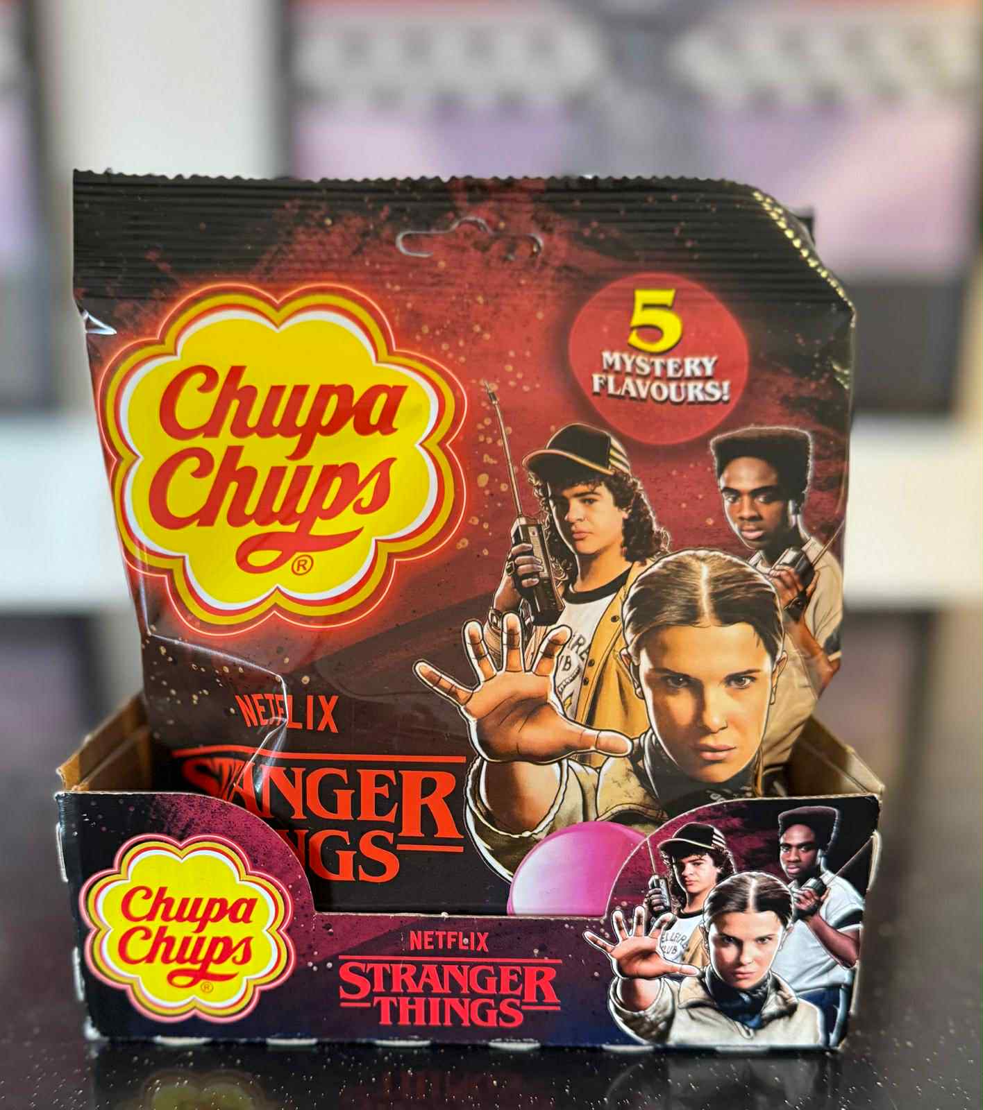 Each bag contains 5 mystery flavoured lollipops, with flavours inspired by the series’ iconic characters. Packaged with Stranger Things branding, these bags also feature a QR code that unlocks a digital experience and competition opportunities, adding extra excitement for fans.